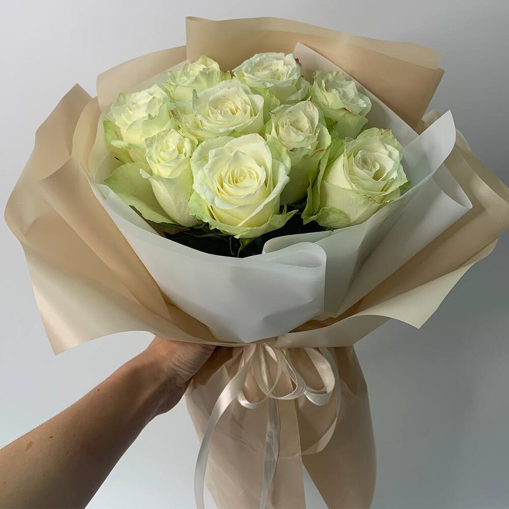 Класичний монобукет з 9 білих троянд