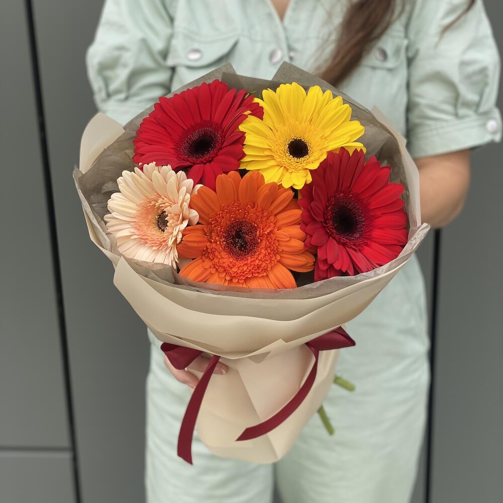 Букет из 5 гербер в оформлении!