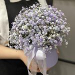 “Сиреневый туман” – композиция из гипсофилы в шляпной коробке