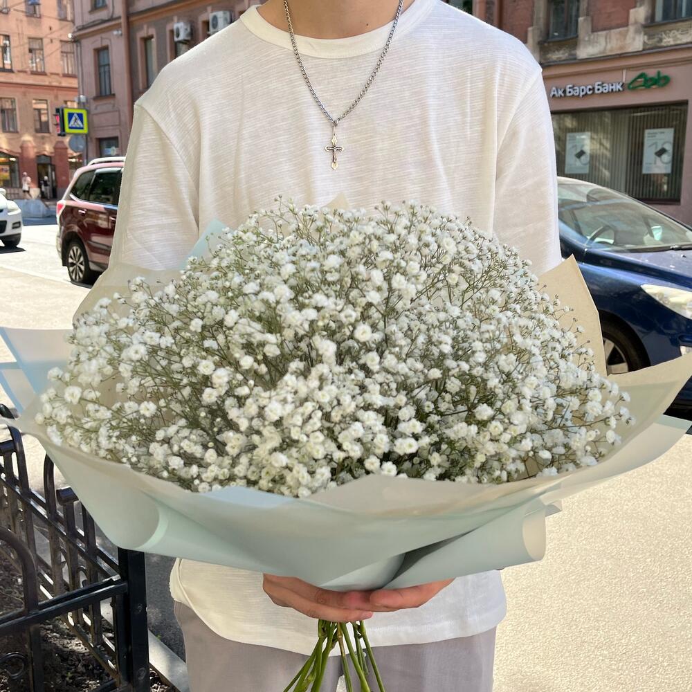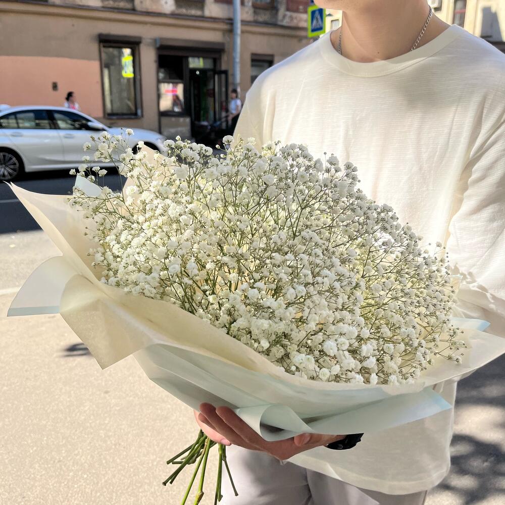 Букет с белой гипсофилой