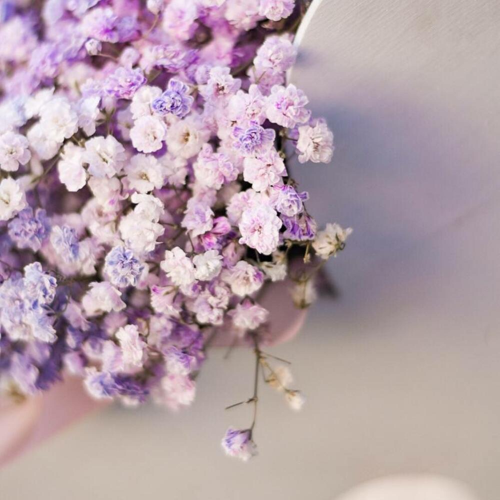 “Сиреневый туман” – композиция из гипсофилы в шляпной коробке