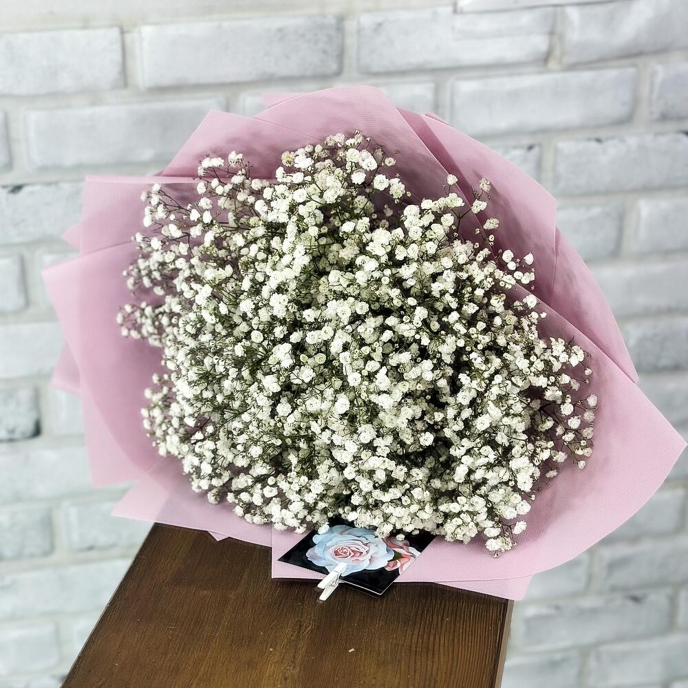 Открыточка с вашими пожеланиями – 1 шт.Средство для продления жизни цветов – 1 шт.гипсофила белая – 9 шт.инструкция по уходу за цветами – 1 шт.упаковка зефирка – 3 шт.