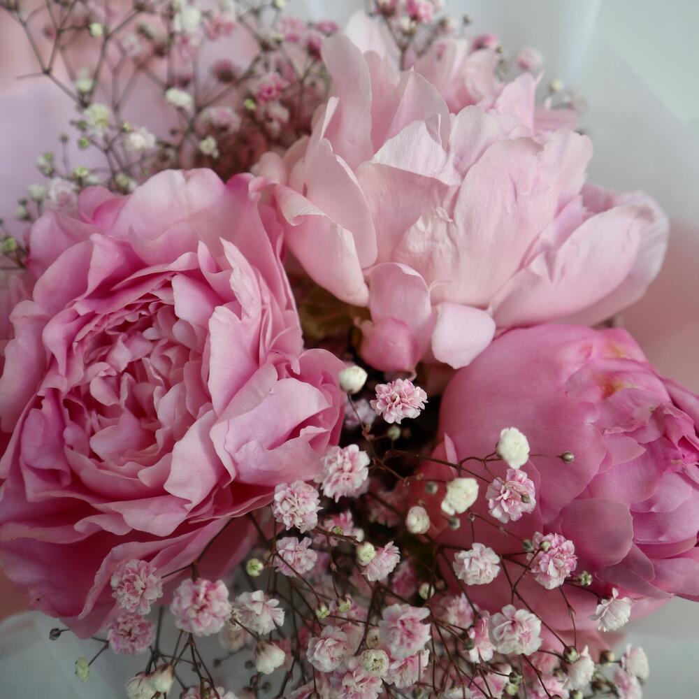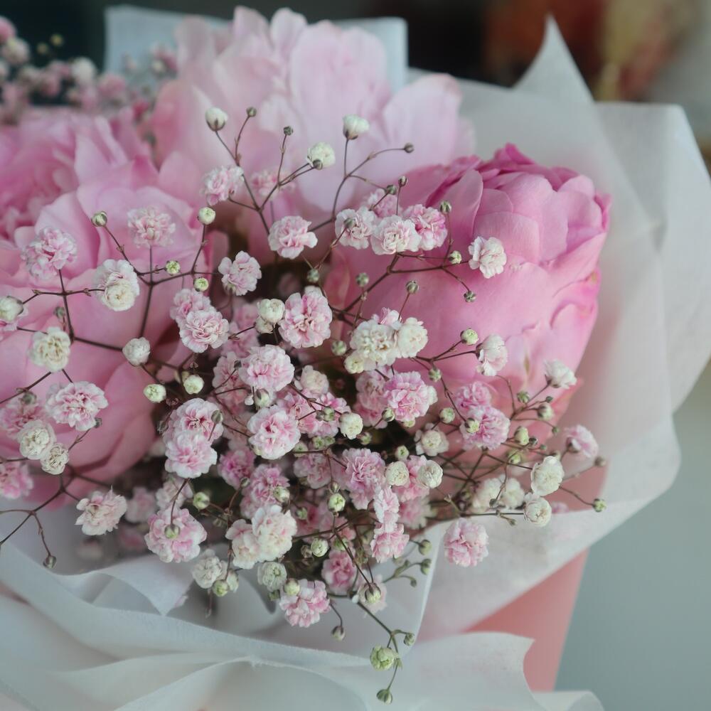 Гвоздики, Кустовые розы, Пионовидные розы, Розы