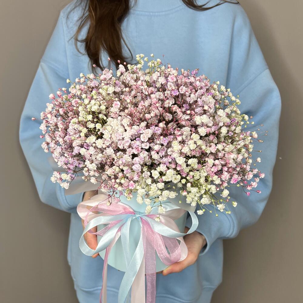 Гипсофила – 7 шт.Коробка шляпная – 1 шт.комплимент от polyanka – 1 шт.
