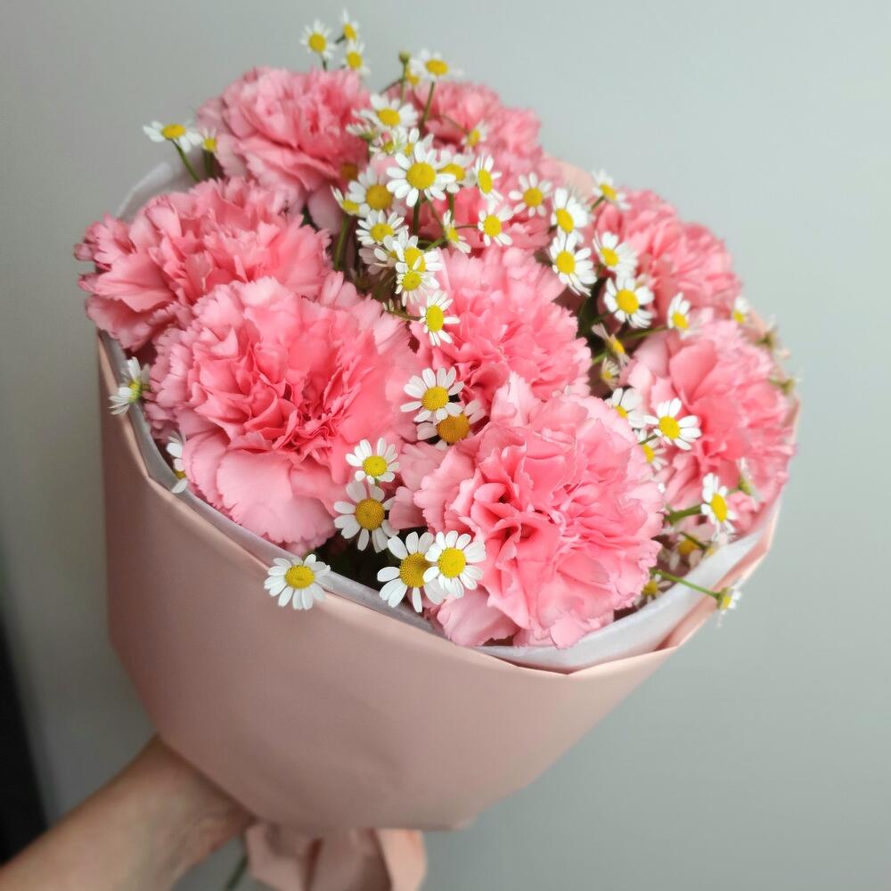 диантусы – 9 шт.Танацетум – 3 шт.Дизайнерская упаковка – 2 шт.