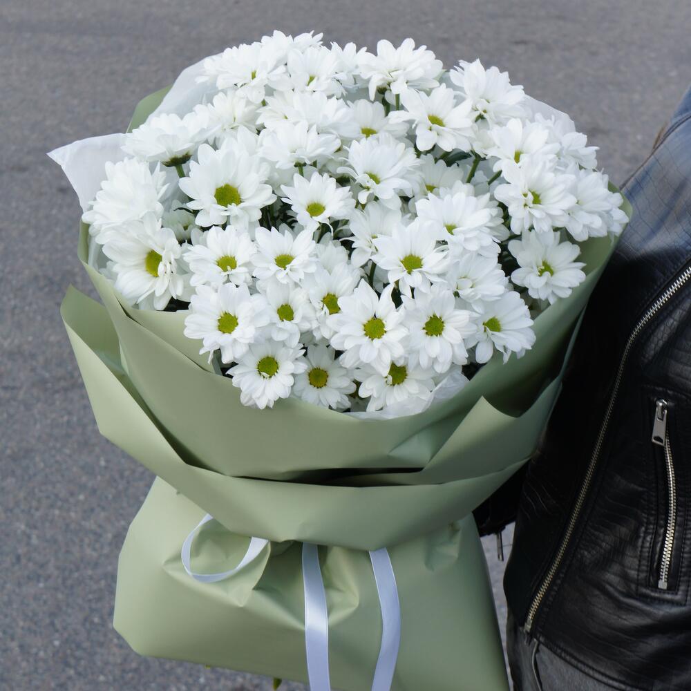 15 белых кустовых хризантем