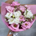 Лизиантус – 3 шт.Ваксфлауэр – 2 шт.Упаковка тишью – 1 шт.Упаковка крафт – 1 шт.Лента атласная – 1 шт.