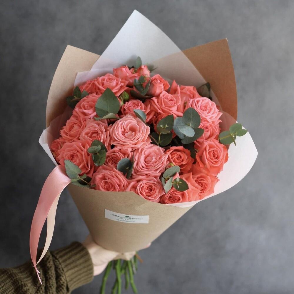 Гвоздики, Кустовые розы, Лизиантусы, Пионовидные розы, Розы