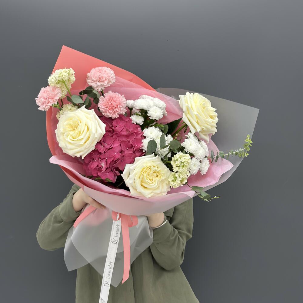 Гвоздики, Кустовые розы, Лизиантусы, Пионовидные розы, Розы