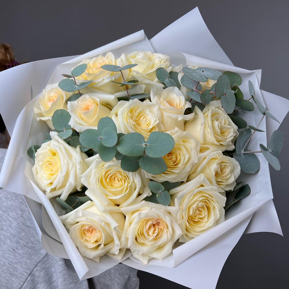 кендллайт роза – 15 шт.Эвкалипт – 3 шт.Дизайнерская упаковка – 1 шт.