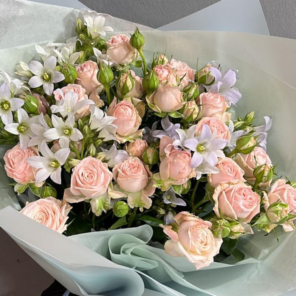 Гвоздики, Кустовые розы, Лизиантусы, Пионовидные розы, Розы