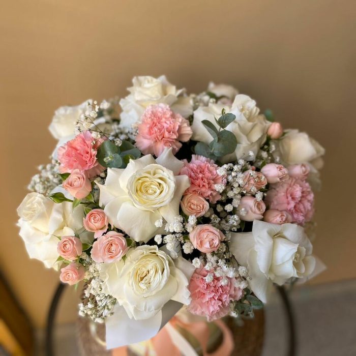 Гвоздики, Кустовые розы, Пионовидные розы, Розы