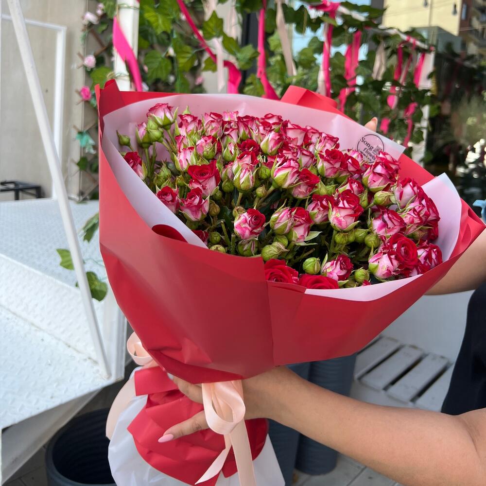 Гвоздики, Кустовые розы, Лизиантусы, Пионовидные розы, Розы