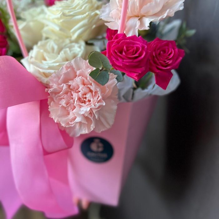 Гвоздики, Кустовые розы, Пионовидные розы, Розы