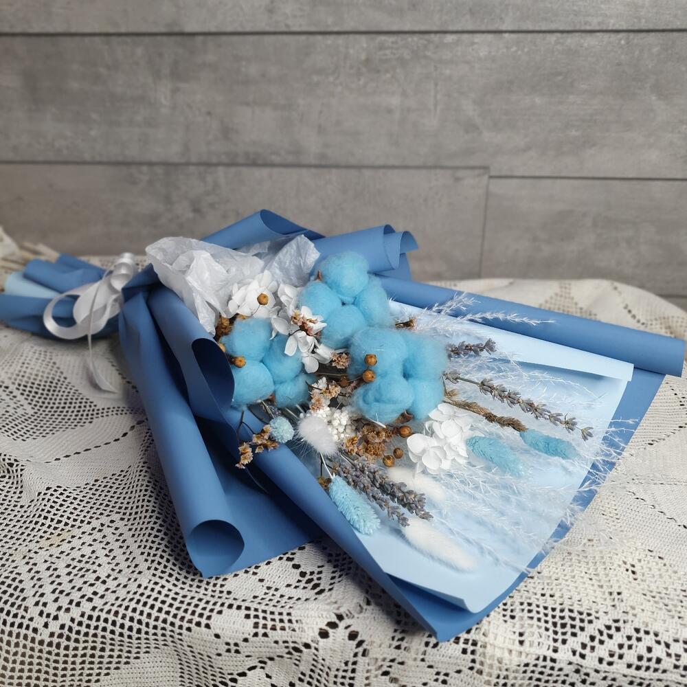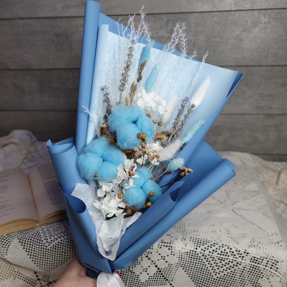 Букет из сухоцветов с хлопком, эвкалиптом, лагурусом