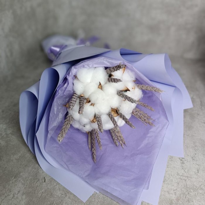 Хлопок – 9 шт.Лента атласная – 2 шт.Кружево – 1 шт.Корейская пленка – 2 шт.Тритикум(пшеница) – 16 шт.Бумага тишью – 1 шт.